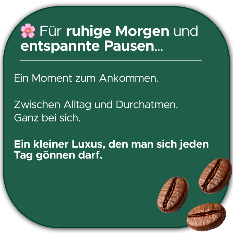 Gönnen Sie sich eine kleine Pause im Alltag â mit einem Kaffee, der nicht nur schmeckt, sondern auch Raum zum Durchatmen lĂ€sst.